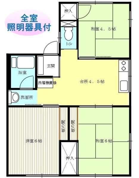 | 築年月 | 1991年1月 | 間取り | 3DK( DK4.5畳/洋室6畳/和室6畳/和室4.5畳 ) | 専有面積 | 50.3m2 |