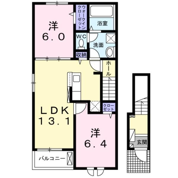 | 種別 / 構造 | アパート / 木造 | 主要採光面 | 南西 | 所在階 / 階数 | 2階 / 2階 |