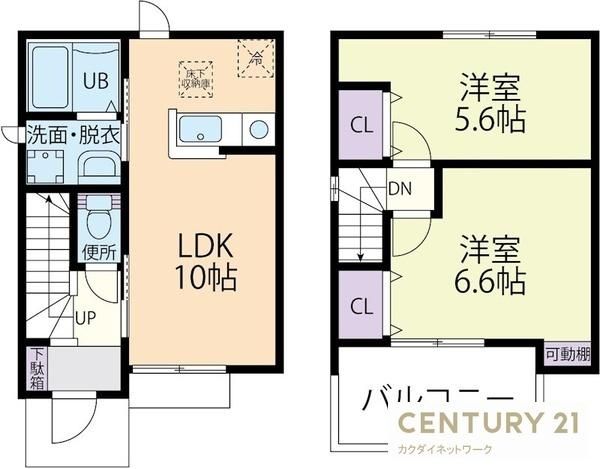| 築年月 | 2021年5月 | 間取り | 2LDK( LDK10畳/洋室6.6畳/洋室5.6畳 ) | 専有面積 | 53.48m2 |