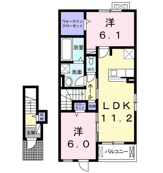 | 種別 / 構造 | アパート / 木造 | 主要採光面 | 南西 | 所在階 / 階数 | 2階 / 2階 |