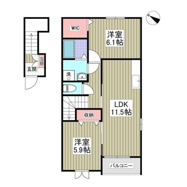 | 種別 / 構造 | アパート / 木造 | 主要採光面 | 南西 | 所在階 / 階数 | 2階 / 2階 |